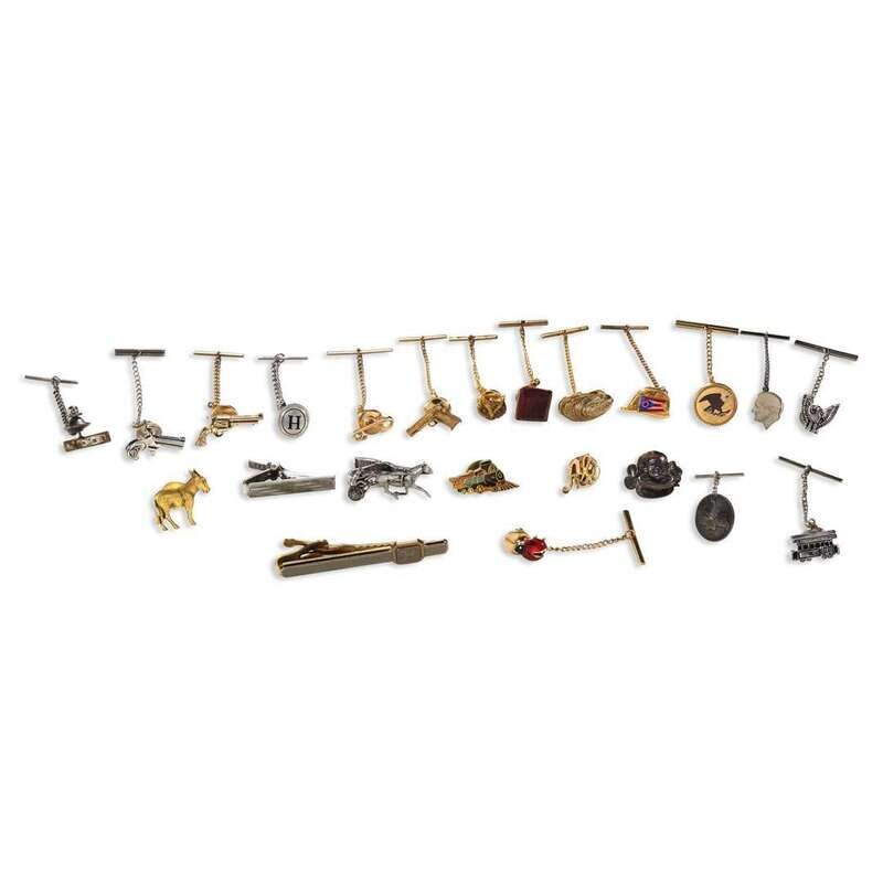 including twenty-three pieces; one mercury dime lapel pin, one sterling silver, and three pieces marked "SWANK."