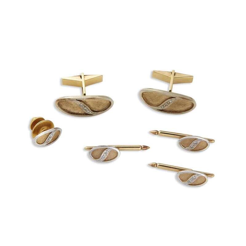 A fourteen karat gold and diamond men's dress set