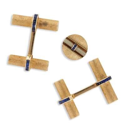 A pair of fourteen karat gold and sapphire cufflinks, Cartier