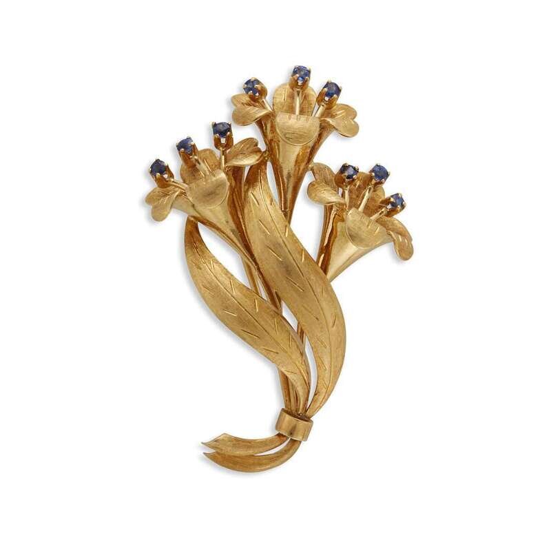 A sapphire and eighteen karat gold brooch, Tiffany & Co.