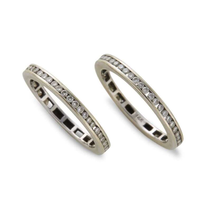Two fourteen karat white gold and diamond eternity bands