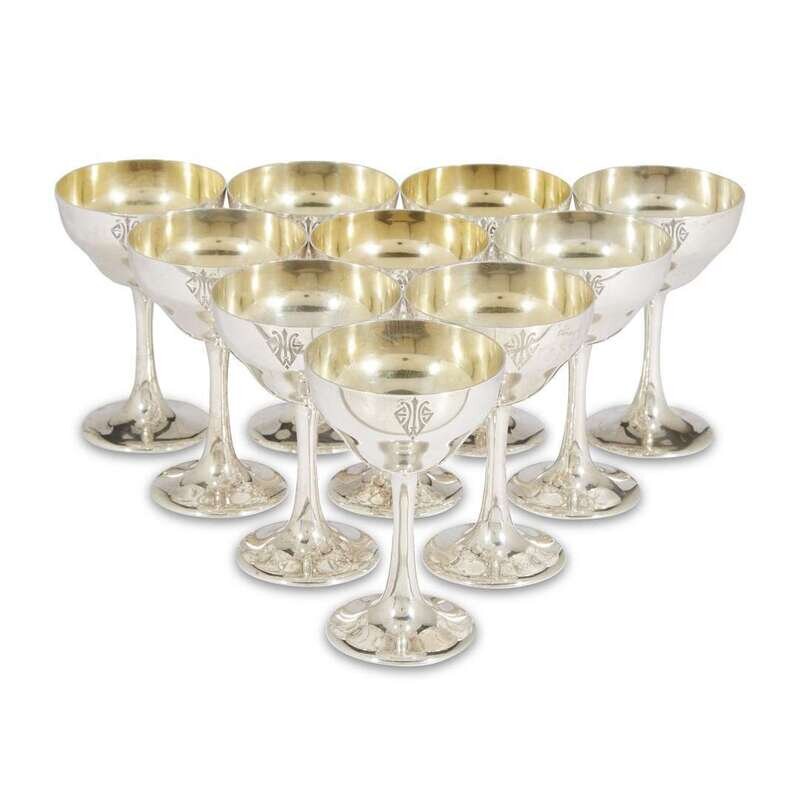 A set of ten sterling silver sherry goblets S. Kirk & Son, Baltimore, MD, 20th century