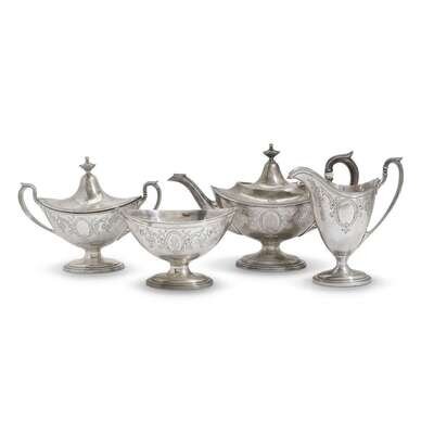 An American sterling silver four piece coffee service Gorham Mfg. Co., Providence, RI, 20th century