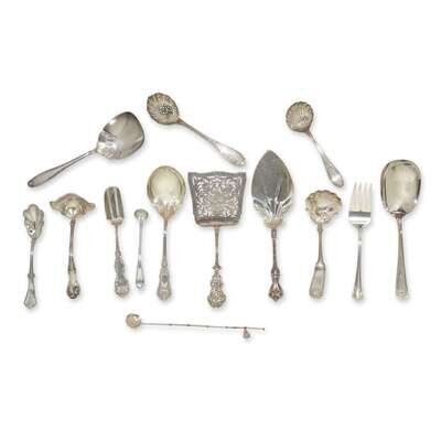 An assembled collection of sterling silver flatware and other serving items 19th/20th century