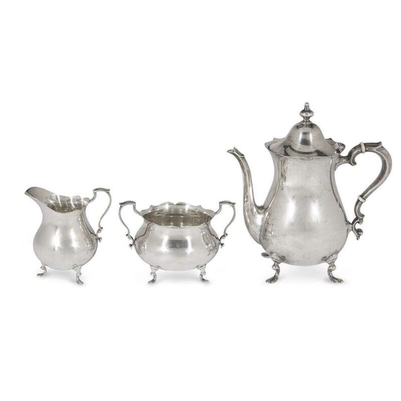 An American sterling silver three-piece coffee service Poole Silver Co., Taunton, MA, 20th century