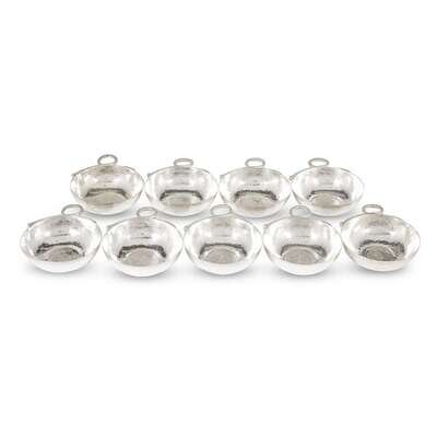 A set of nine Mexican coin-inset sterling silver wine tasters Marked only with eagle mark and SWD, mid-20th century