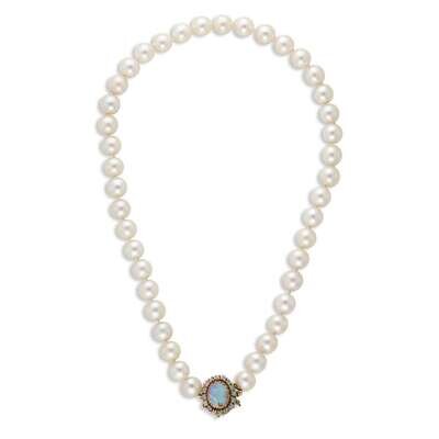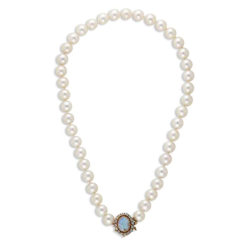 measuring approximately 8.30mm, completed by an opal and fourteen karat gold clasp.