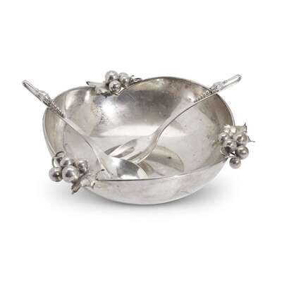 W: 10 3/4 in. (bowl), L: 8 5/8 in. (serving utensils), Total weight: approx. 28.37 oz. t. (weighable sterling silver)