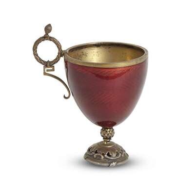 A strawberry guilloché enamel and gilt metal charka Bearing spurious Fabergé mark, 20th century