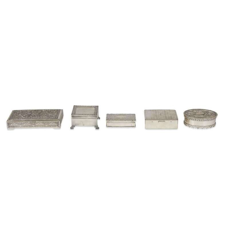 A collection of five silver snuffboxes and trinket boxes Mostly 19th and early 20th century