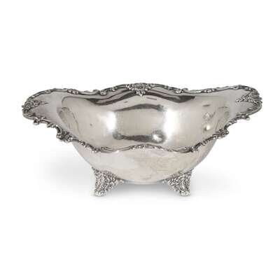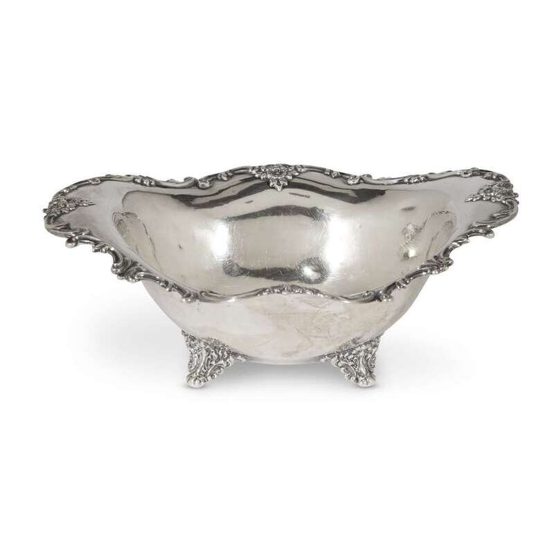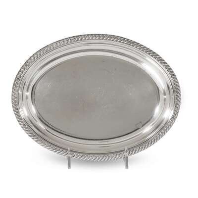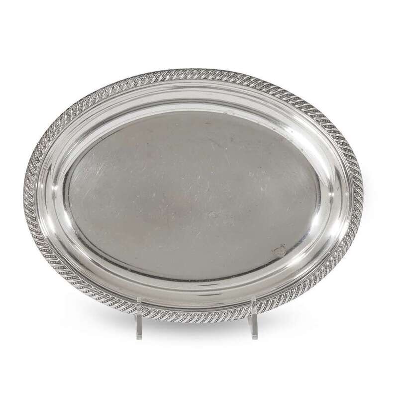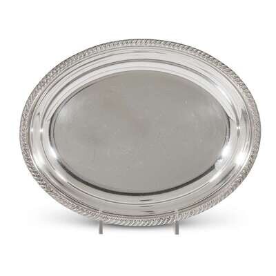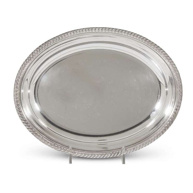 L: 16 3/4 in. (longest serving platter), Total weight: 57.445 oz. t. (weighable sterling and silver items)