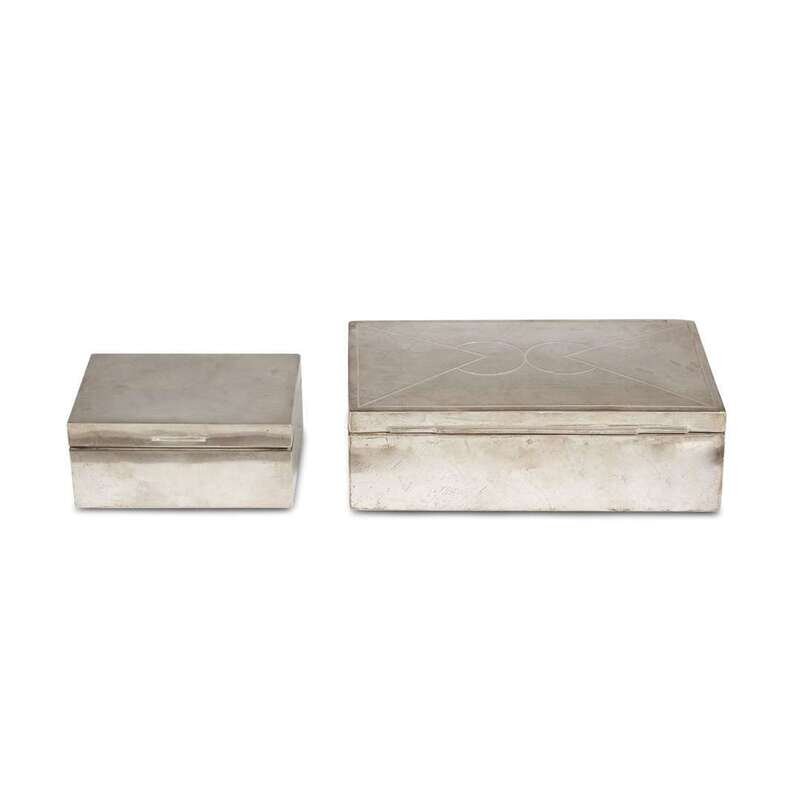Two Art Deco sterling silver cigarette boxes the first french, circa 1930, the other adie bros., birmingham, 1932