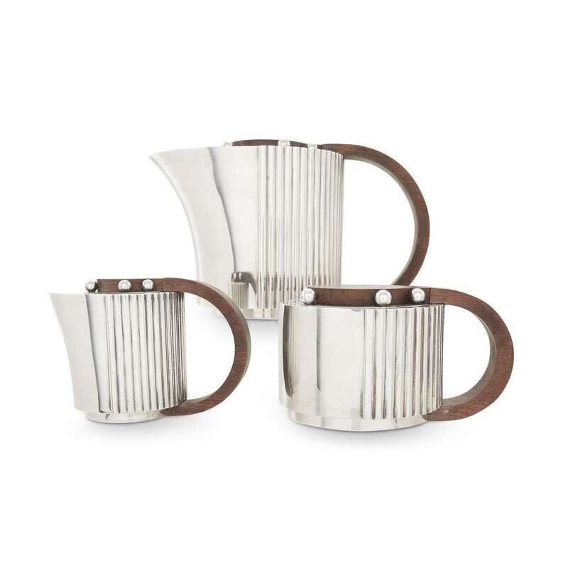 JEAN PUIFORCAT (FRENCH, 1897-1945) ART DECO THREE-PIECE TEA SERVICE, CIRCA 1986