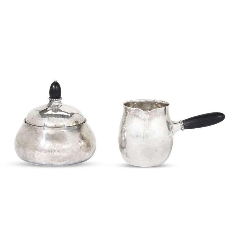An associated Danish sterling silver sugar and creamer set Georg Jensen, Copenhagen,1933-1944 and late 20th century