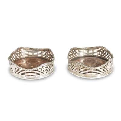 A pair of George III style silver and mahogany wine coasters probably 19th century