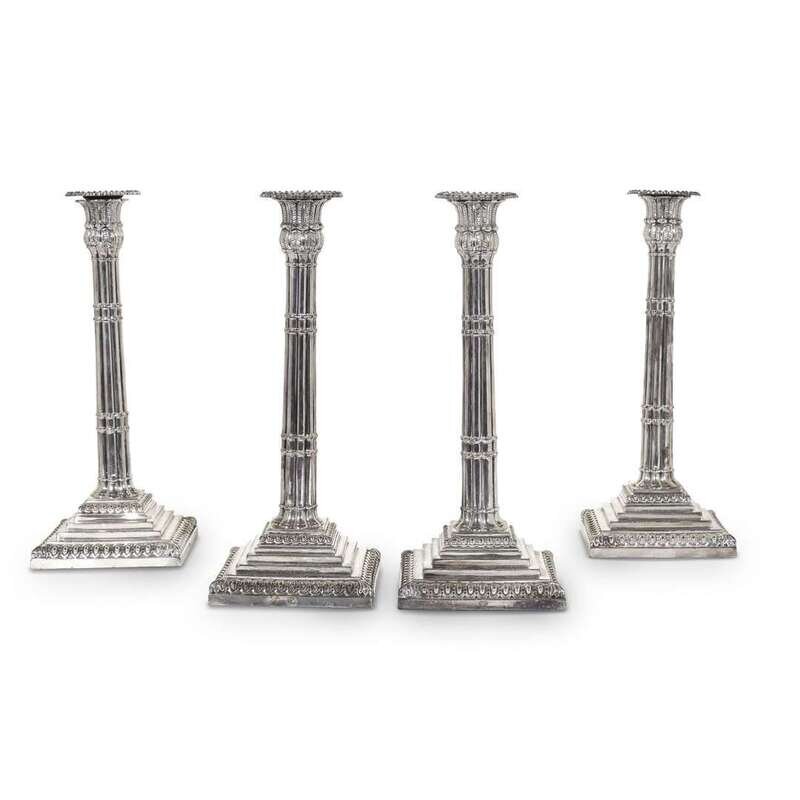 A set of four George III style silverplated weighted candlesticks Barker Brothers (Later Barker-Ellis), Birmingham, 1912-1931