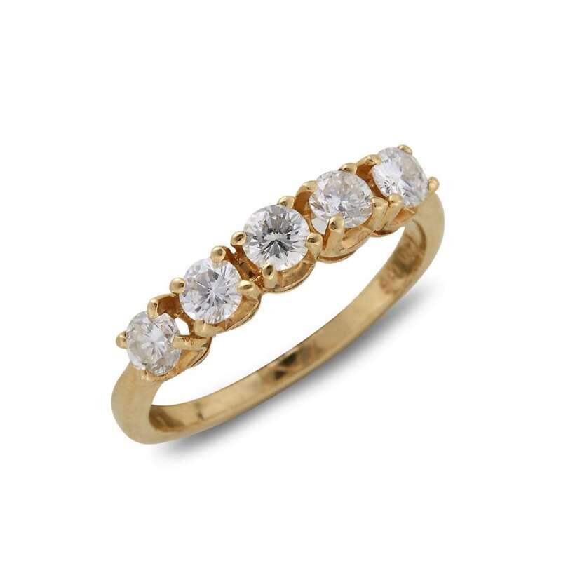 set with five diamonds; estimated total diamond weight: 0.75 carat.