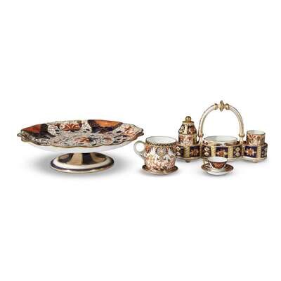An assembled collection of nine English Imari porcelain tablewares Various makers, 19th century