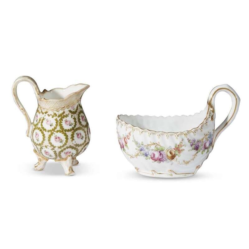 Two Continental porcelain creamers Bearing false Sèvres and German marks, late 19th century