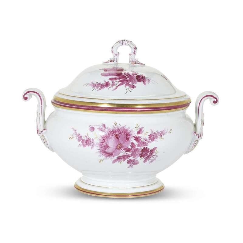 A Meissen parcel-gilt and hand painted porcelain tureen 1815-1860