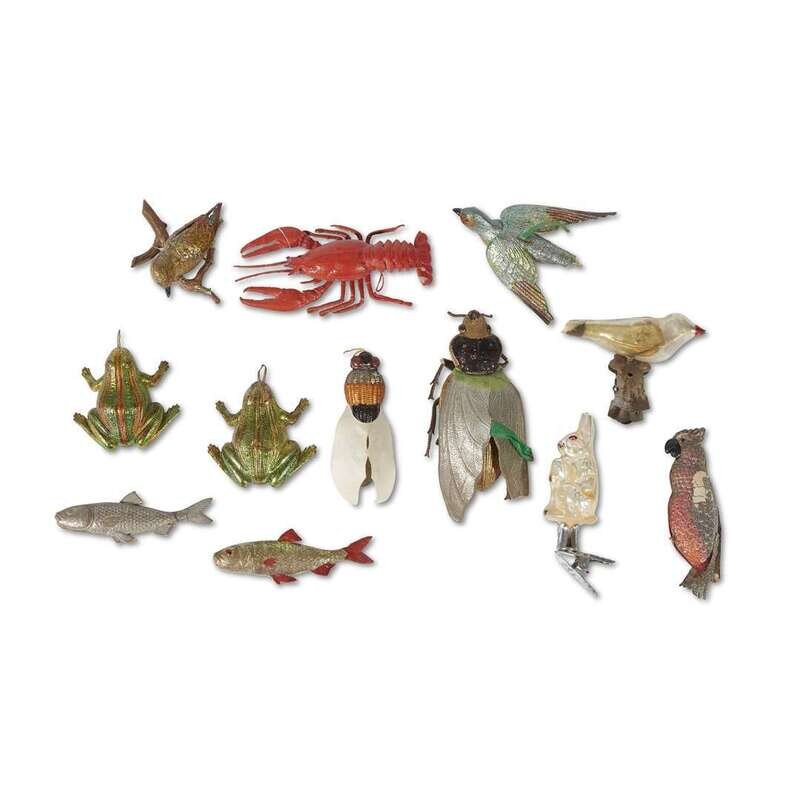 A collection of various German Dresden animal Christmas tree ornaments Early 20th century