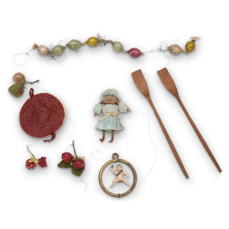 An assorted collection of various Christmas tree ornaments Early 20th century