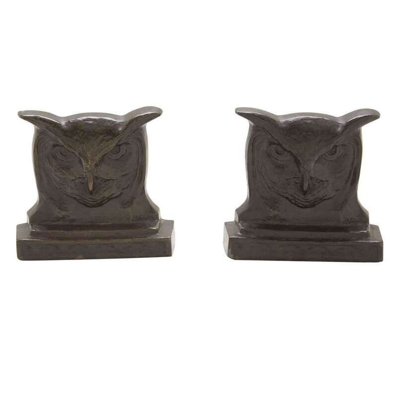 A pair of bronze owl-form bookends Griffoul foundry, Newark, NJ for Tiffany & Co., NY, 20th century