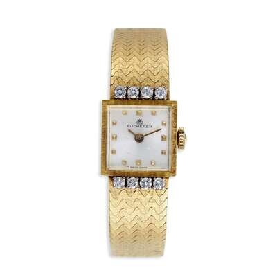 A ladies eighteen karat gold and diamond bracelet watch, Bucherer