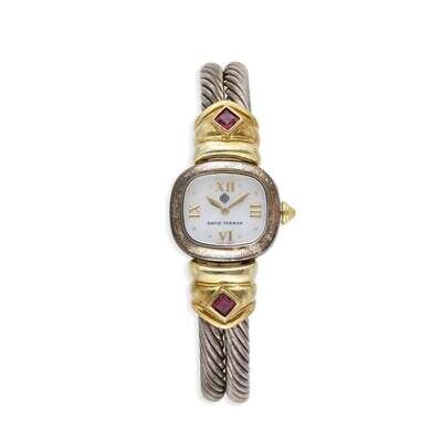 A sterling silver, fourteen and gem set karat gold bangle watch, David Yurman
