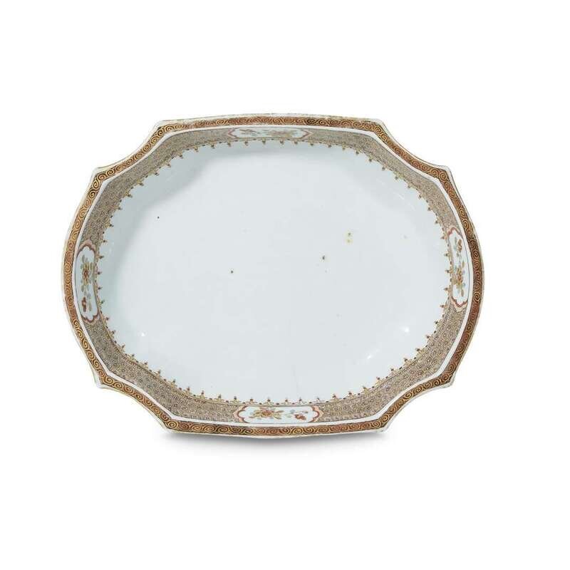 A large Chinese export oval scalloped dish 19th century