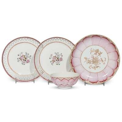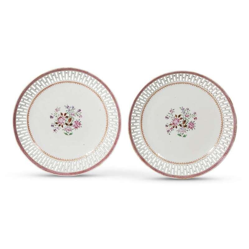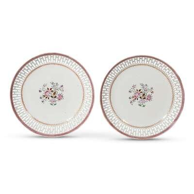 Together with a pair of 19th century Chinese export porcelain famille rose reticulated bowls.