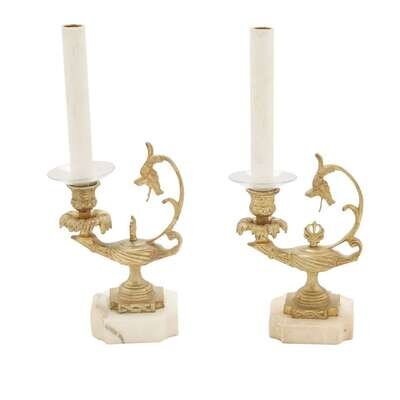 A pair of gilt bronze and white marble lamp-form candlesticks Late 19th/early 20th century