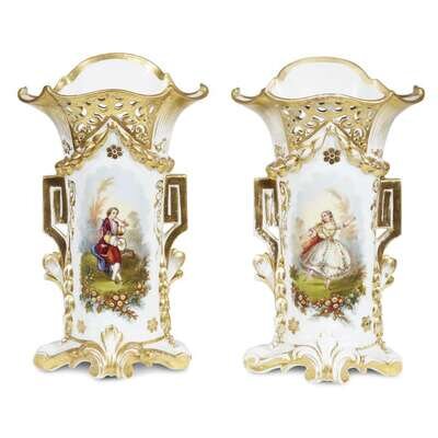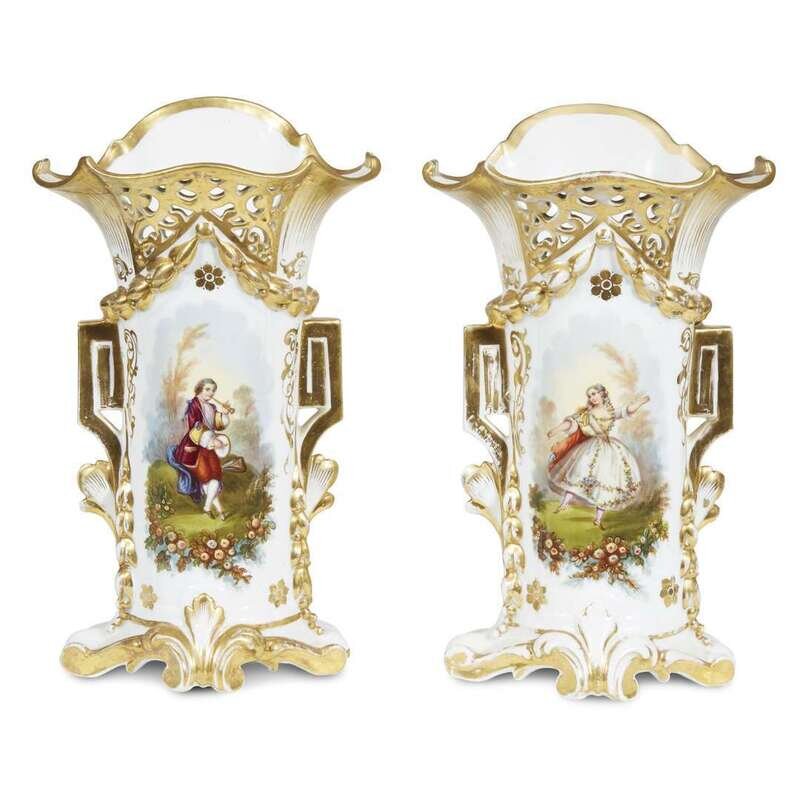 A pair of hand-painted and parcel-gilt Paris porcelain vases Second half 19th century