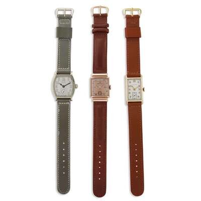 A collection of three fourteen karat gold strap watches, Hamilton and Eglin circa 1930's to 1950's