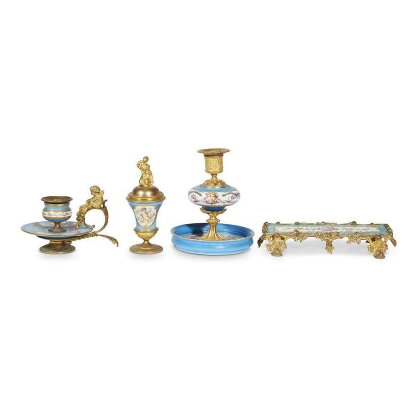 A group of Sèvres style giltmetal-mounted bleu céleste porcelain desk articles Late 19th/early 20th century