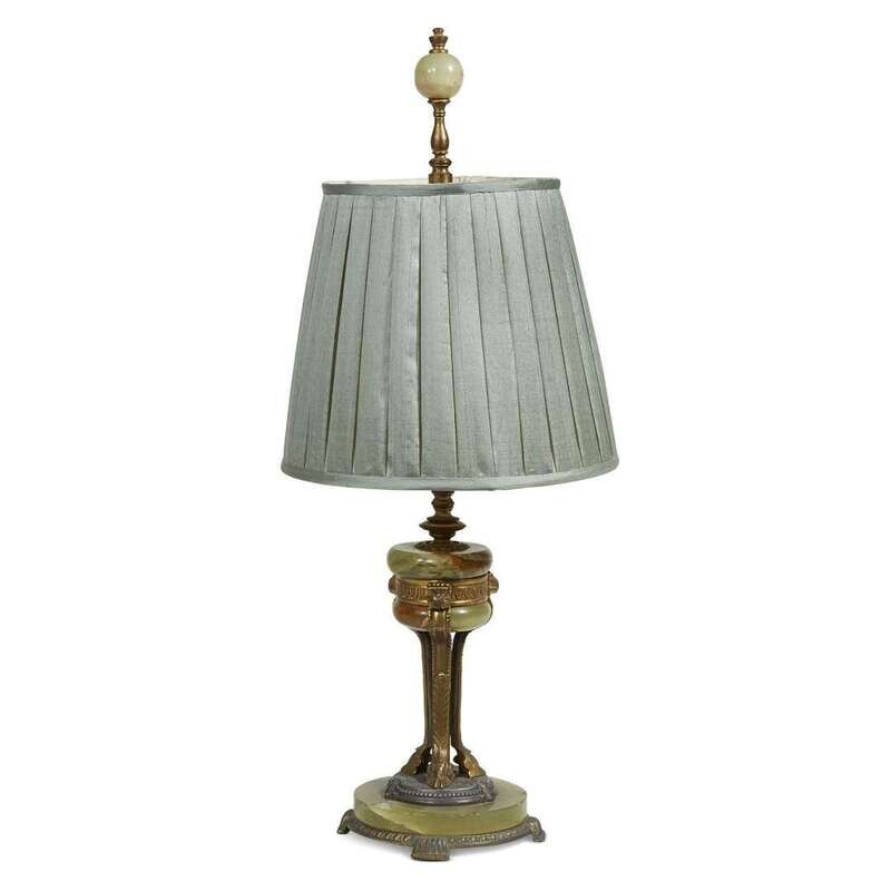 A Directoire style gilt and patinated bronze mounted onyx lamp Early to mid 20th century