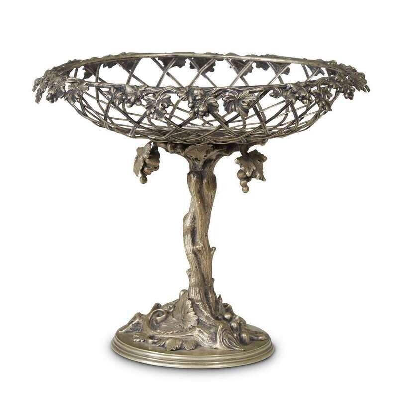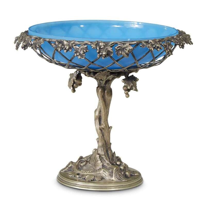 A silvered bronze and blue opaline glass tazza Late 19th century
