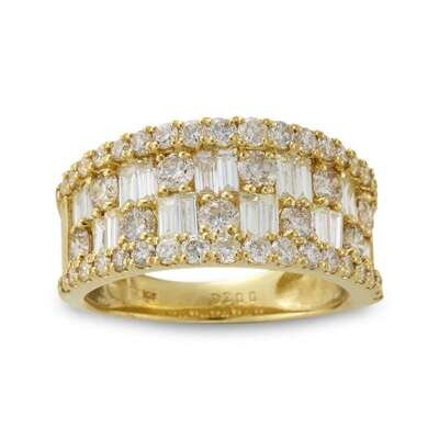 set with round brilliant and baguette-cut diamonds; estimated total diamond weight: 2.00 carats.