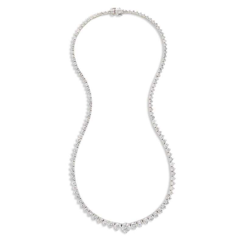 centering one round brilliant-cut diamond, weighing approximately 1.40 carats, accented by graduated round brilliant-cut diamonds; estimated total remaining diamond weight: 15.60 carats, mounted in eighteen karat white gold.