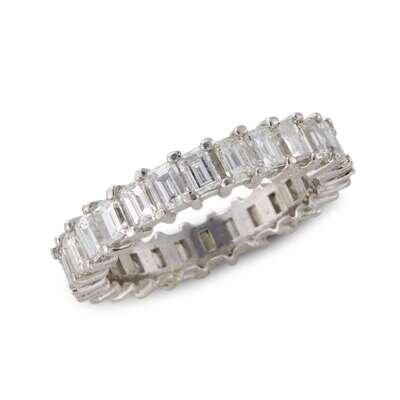 set with baguette-cut diamonds; estimated total diamond weight: 3.20 carats.