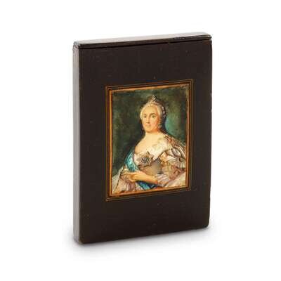 A Russian Lacquer Etui Form Case after Eriksen "Portrait of Catherine The Great" Lukutin Manufactory, Fedoskino, ca. 1888