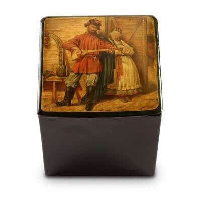 A Russian Lacquer Tobacco Box "A Folk Song" Vishnyakov & Sons, Ostashkovo, ca. 1880