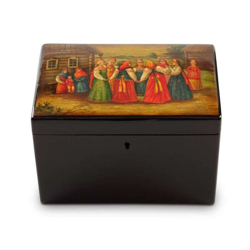 A Russian Lacquer Box “In the Village: The Circle Dance” Vishnyakov & Sons, Ostashkovo, ca. 1880