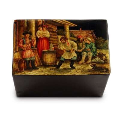 A Russian Lacquer Box "A Village Dance" Vishnyakov & Sons, Ostashkovo, ca. 1880