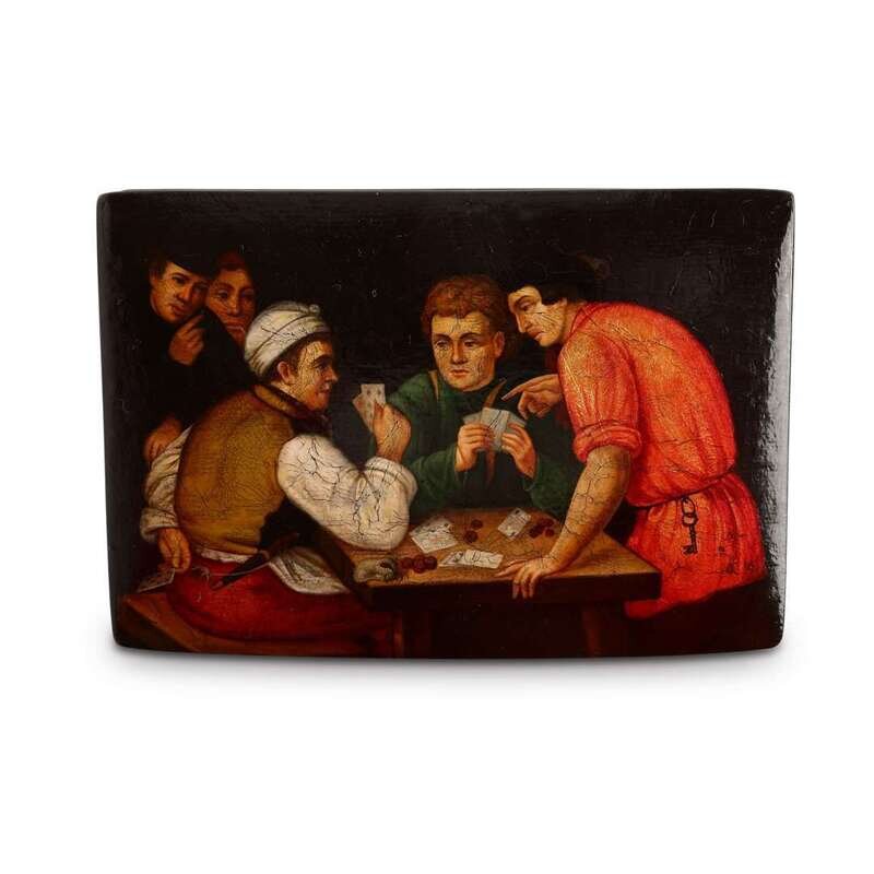 A Russian Lacquer Box “The Dishonest Card Game” Vishnyakov & Sons, Ostashkovo, ca. 1880