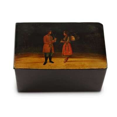 A Russian Lacquer Box "A Drink from the Water Carrier" Pizhov Workshop, Moscow, ca. 1880