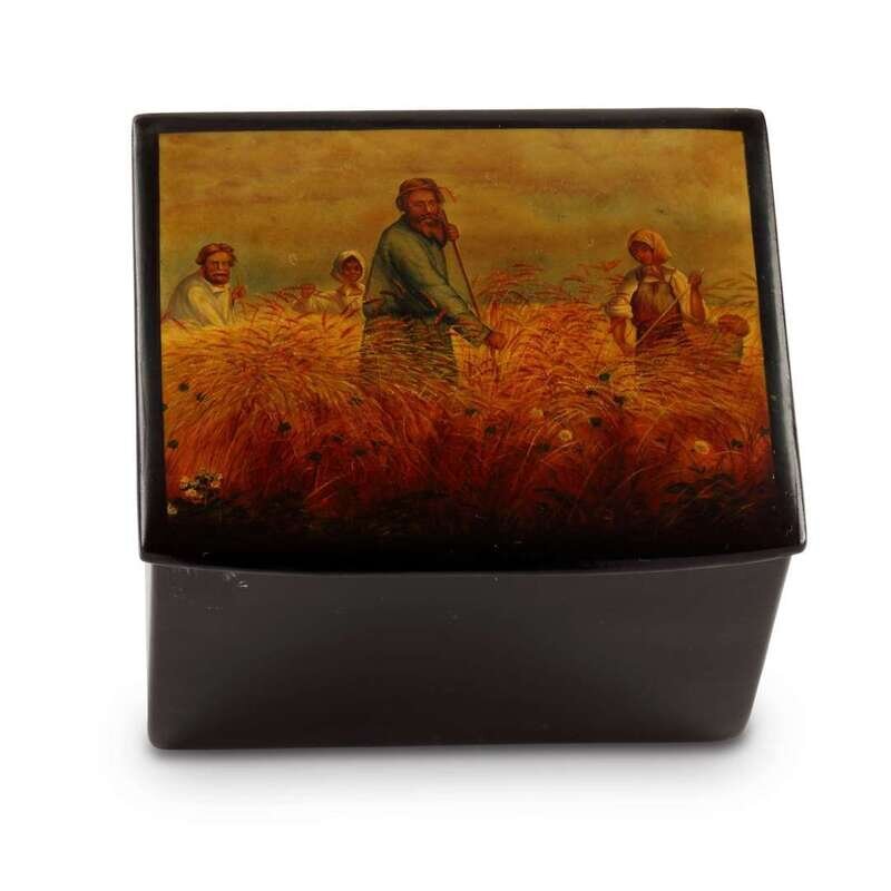 A Russian Lacquer Box "Reapers in the Field" Vishnyakov & Sons, Ostashkovo, ca. 1880-1890