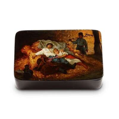 A Russian Lacquer Box “Asleep at the Harvest” Unknown manufacturer, likely Moscow, ca. 1880