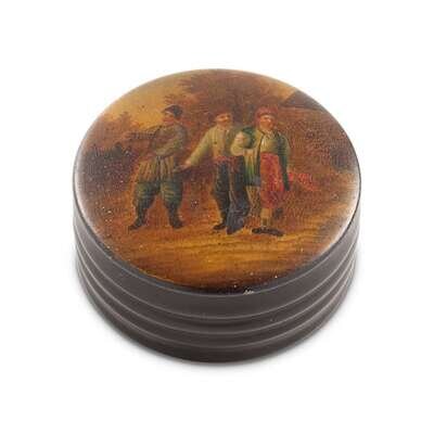 A Russian Lacquer Snuffbox "Village types" Vishnyakov & Sons, Ostashkovo, ca. 1880