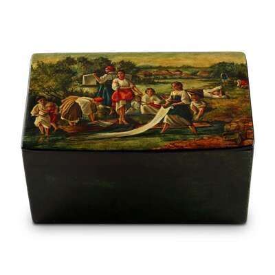 A Russian Lacquer Casket "Washerwomen by the river" Vishnyakov & Sons, Ostashkovo, ca. 1880